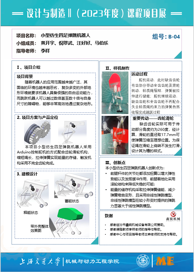 (1)得到一个具有跳跃能力的仿生青蛙样机。