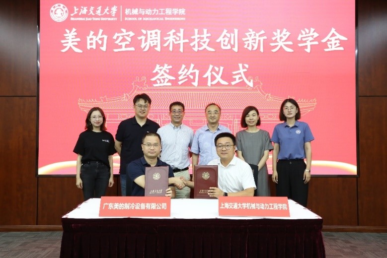 为激励青年学子大胆创新、追求卓越,广东美的制冷设备有限公司捐资设立“美的空调科技创新奖学金”。李金波、朱磊共同签署了捐赠协议。