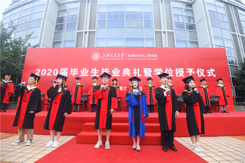 “我将谨记饮水思源,爱国荣校之校训,承机动百年之传统,志存高远,追求卓越,续试点学院之精神,敢为人先,求索创新,为民族振兴和人类进步而奋斗终身!”毕业生们起立许下铮铮誓言,最后同学们奏唱上海交通大学校歌,伴着校歌悠扬的旋律和同学们的齐声合唱的歌声,毕业典礼庄严结束。