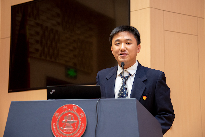 郁中昊代表主席团致辞,从建党百年系列活动、师生共建等角度回顾了上一学年丰富多彩的活动,就过去一年的工作提出应当增进多方沟通,坚持全心全意为学生服务的宗旨,“为学生而来,做学生的光”。