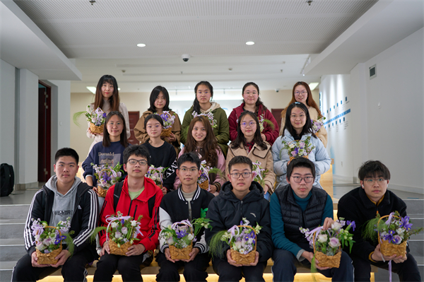 插花完成后,同学们互相鉴赏点评了各自制作的花篮,并分享了此次插花活动的心得体会,最后同学们进行合影留念。