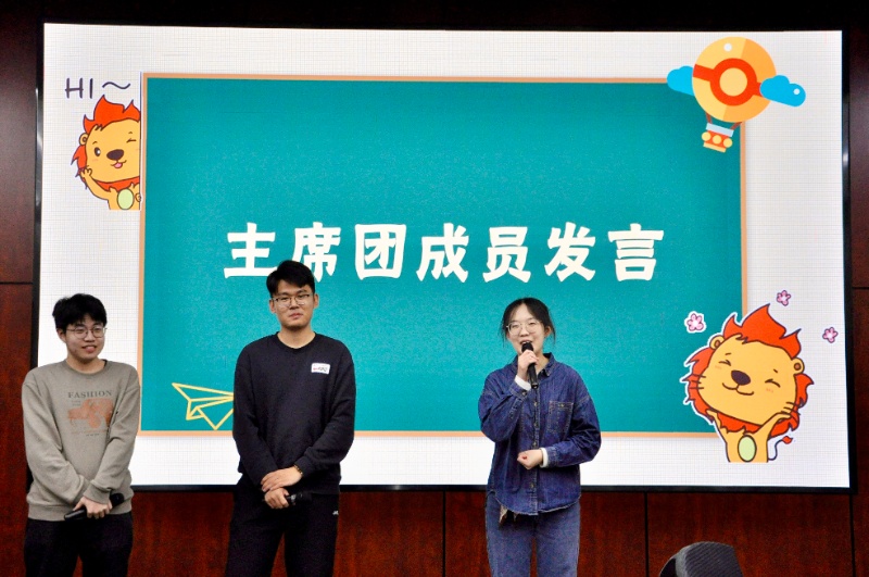 院团委书记戴雨吟老师首先为本次大会致辞。她对团委学生会许以衷心的祝愿,同时向团委学生会的成员们提出三点期望,希望同学们能坚定服务同学的初心,做全面发展的多面手,同时注重团队合作、加强队伍建设。最后,她祝愿团委学生会能够永远年轻,越来越好。