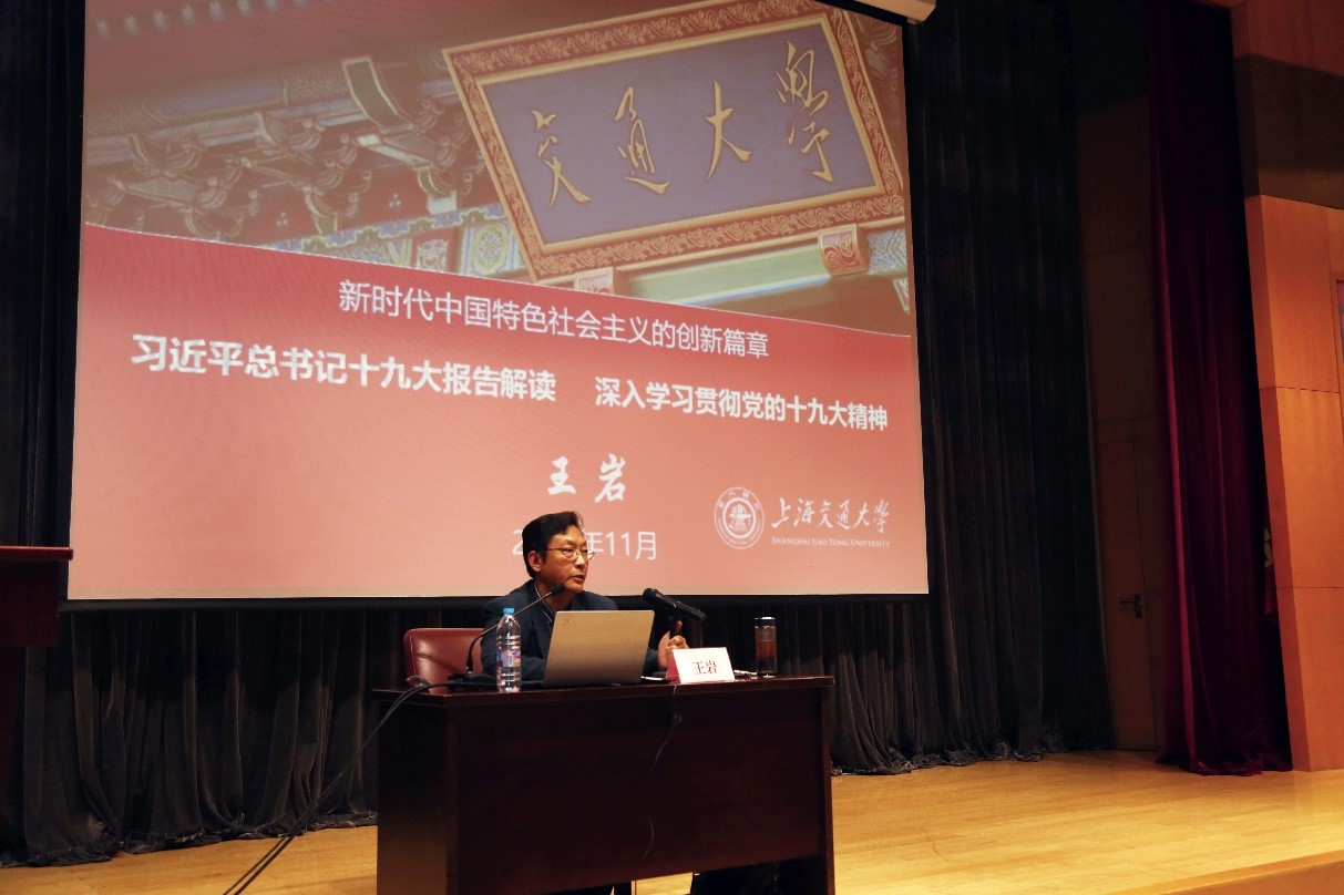 11月9日,机械动力学院举行“深入学习贯彻党的十九大精神”专题报告会,特邀上海交通大学特聘教授、国家级教学名师、马克思主义学院院长王岩解读十九大精神。学院领导班子、师生党支部书记及党员代表、入党积极分子250余人参加了报告会。报告会由学院党委副书记顾希垚主持。